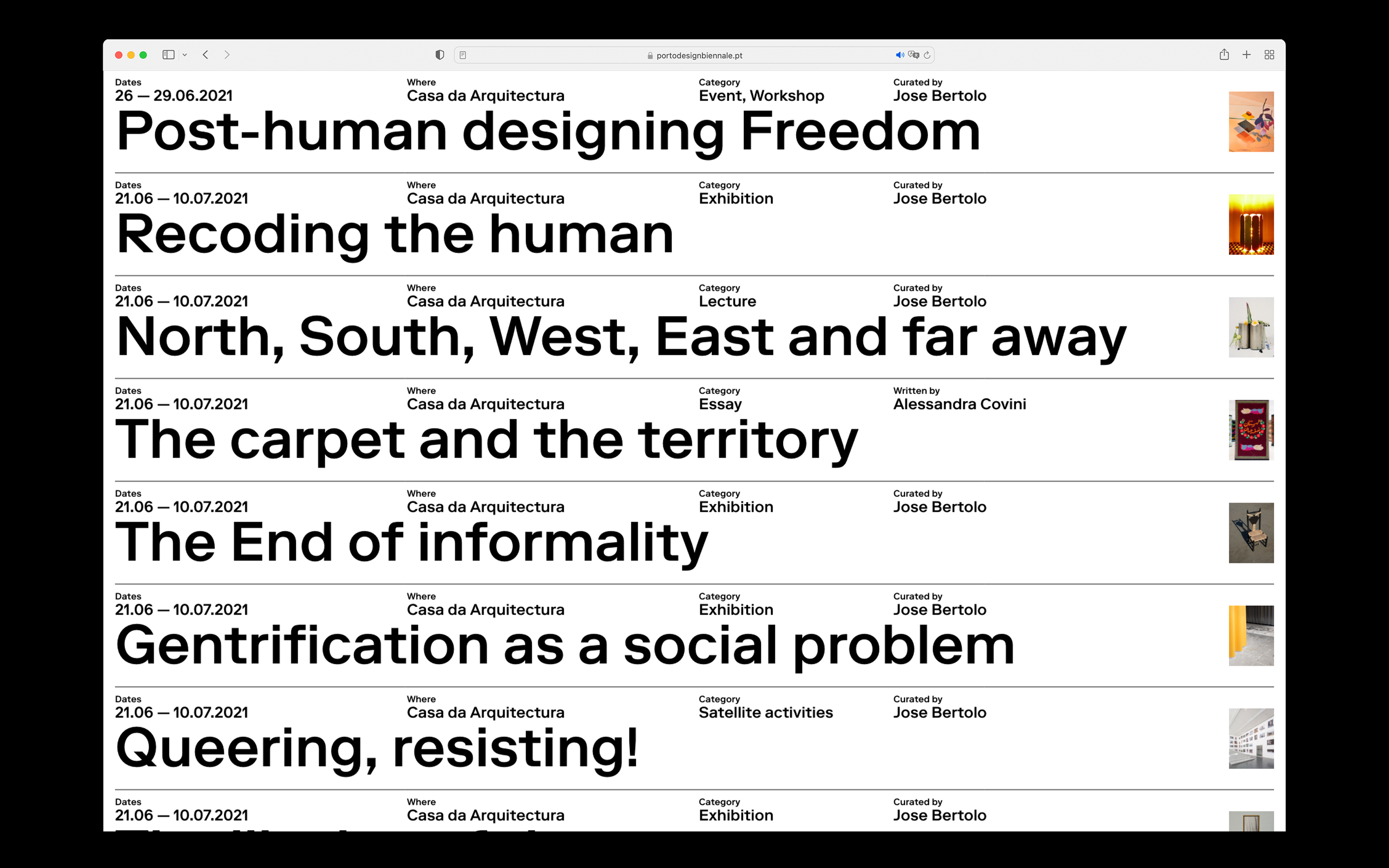 Porto Design Biennale is a renowned global gathering that delves into the role of design in fostering more fulfilling and sustainable lifestyles. Over the course of two months, designers, curators, activists, decision-makers, students, and citizens converge in the cities of Porto and Matosinhos to envision alternative spaces, novel forms of production, and innovative ways of subsistence through design.