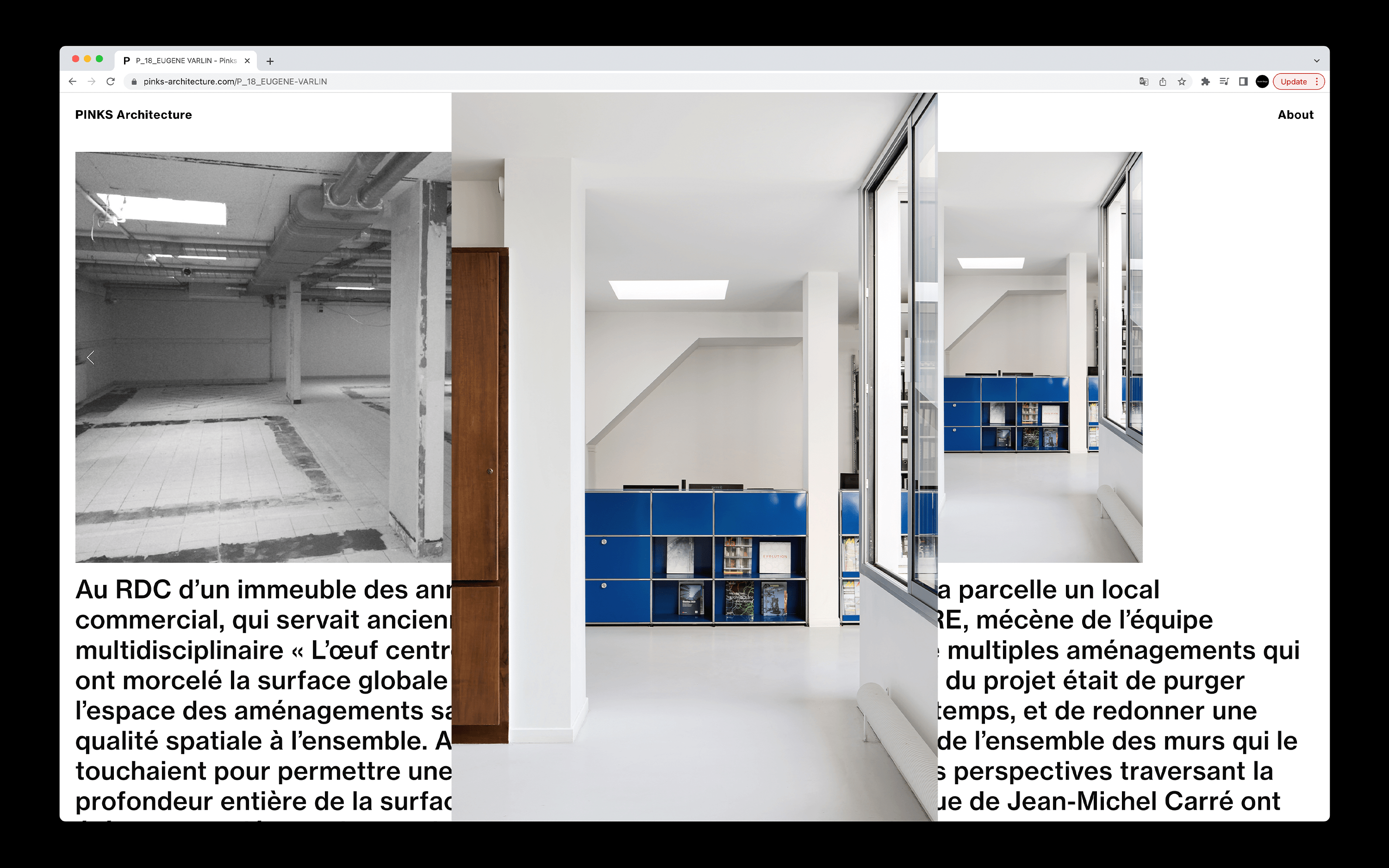 This website marks PINK's initial online presence. For Bettina, it was crucial to have a website that showcases her practice by highlighting her involvement in various projects throughout her career while offering a comprehensive representation of selected cases.